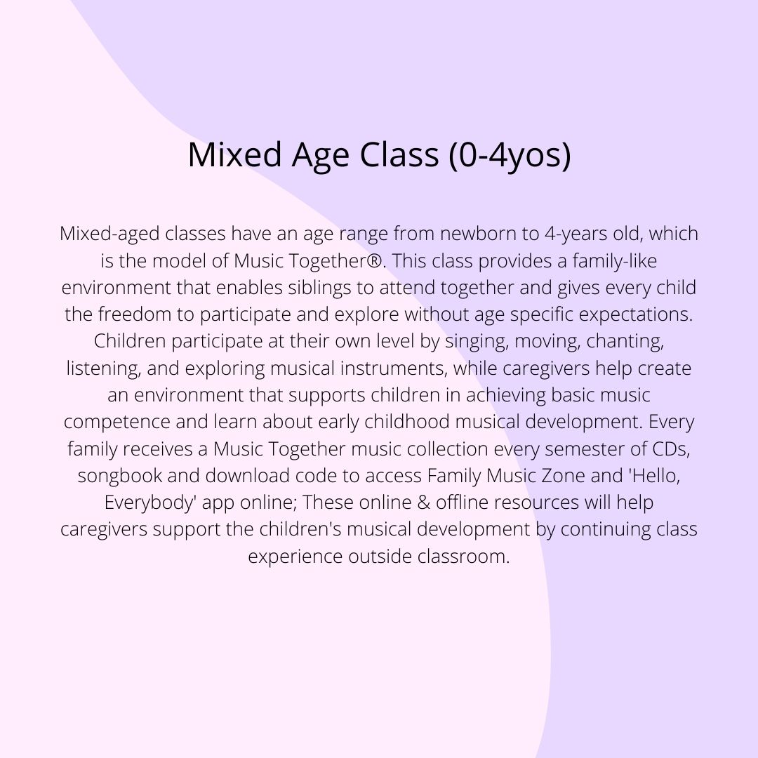 *Music Together® INDOORS: A weekly 45-minute Music Together classes at various INDOOR locations.